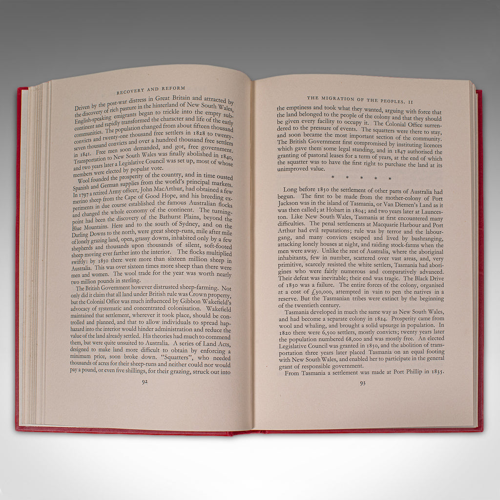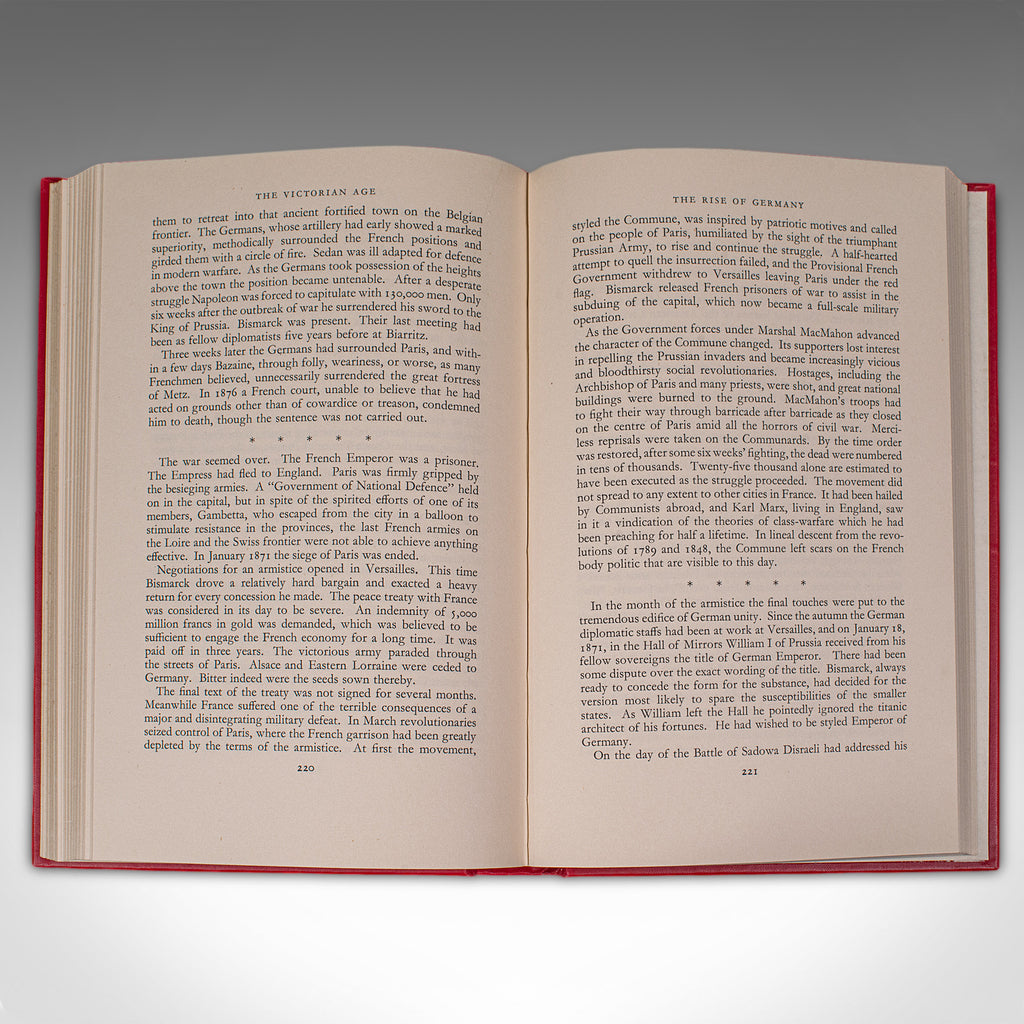 - Volumes traditionally bound in publisher’s cloth boards, with a striking crimson hue