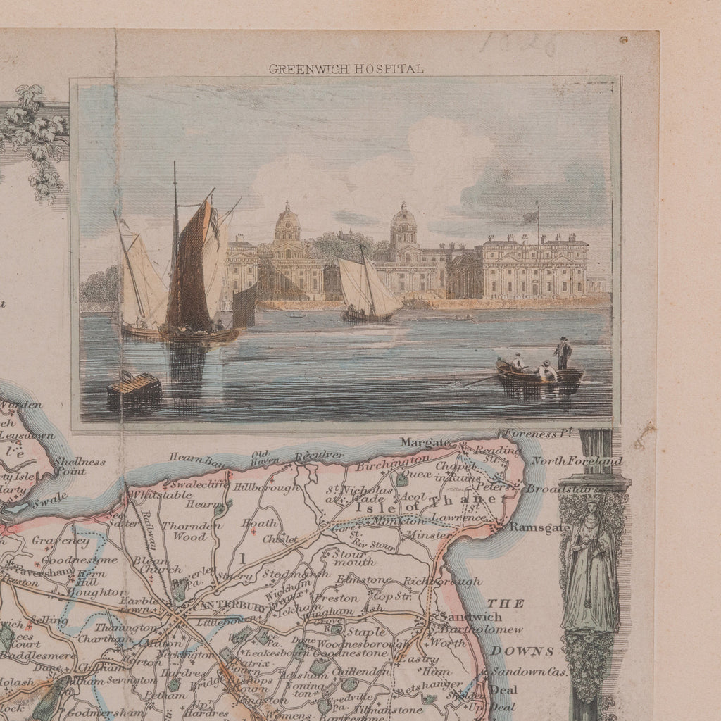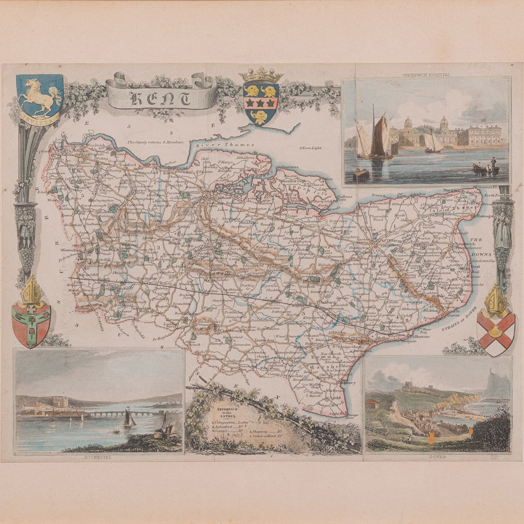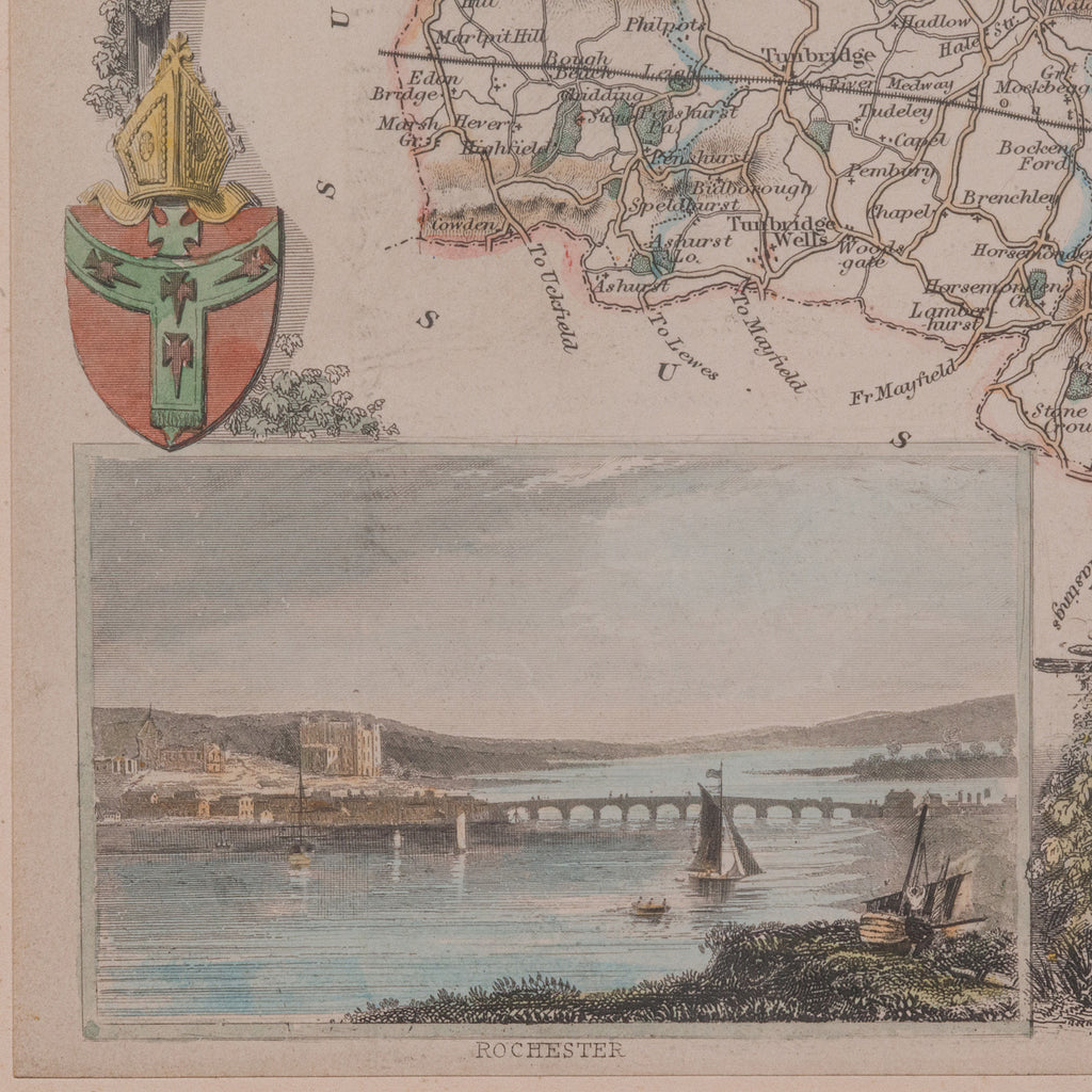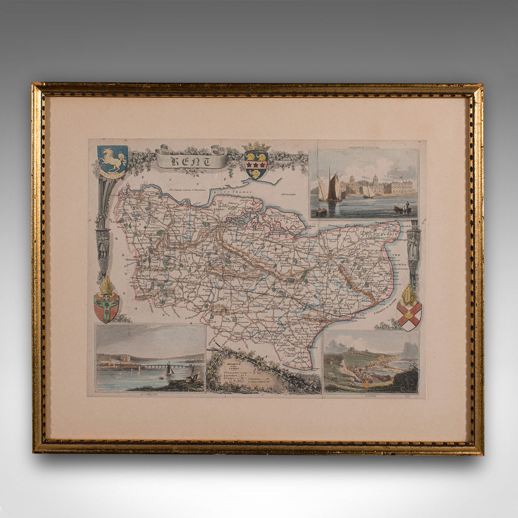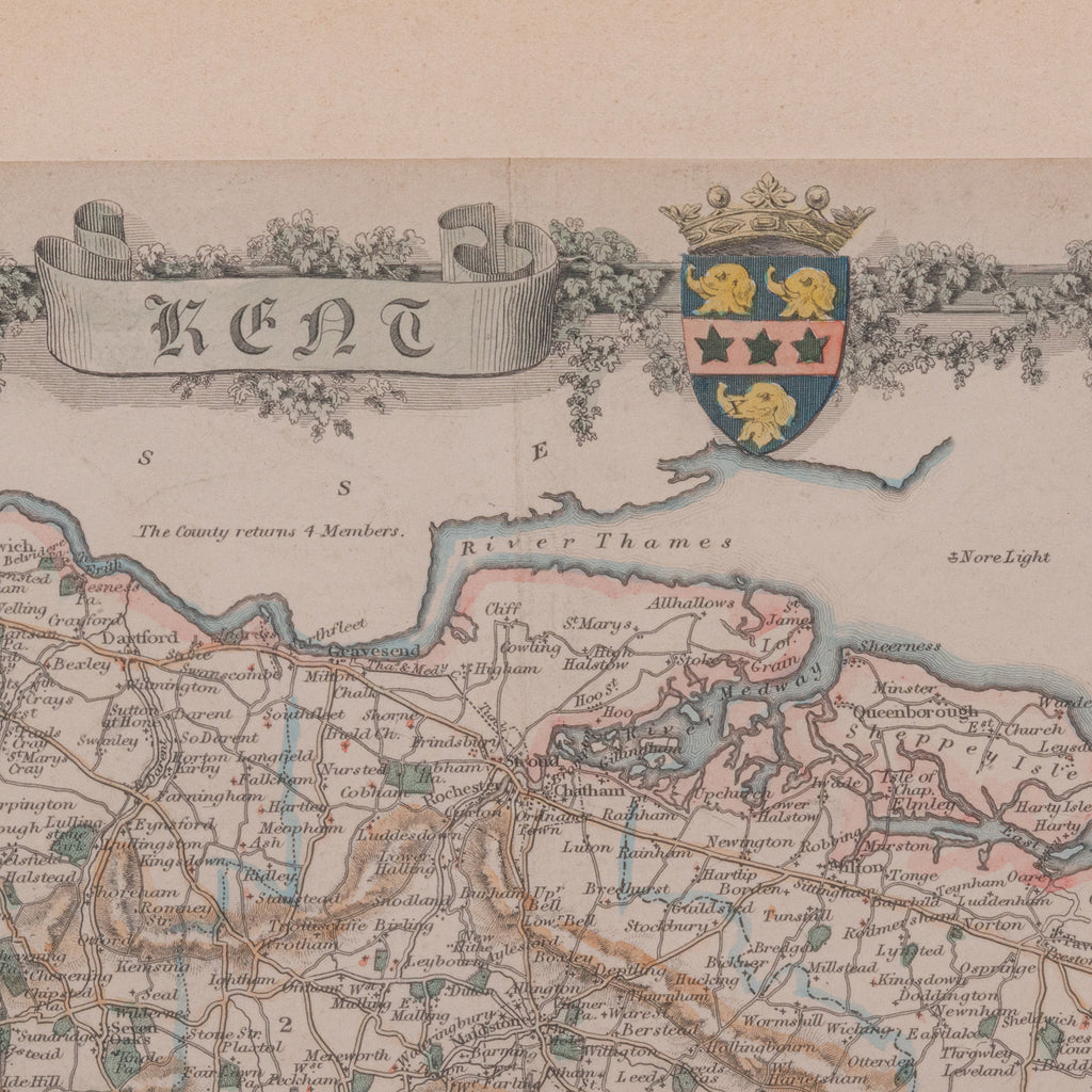 Vintage County Map, Kent, History 19th Century Cartography, After Thomas Moule