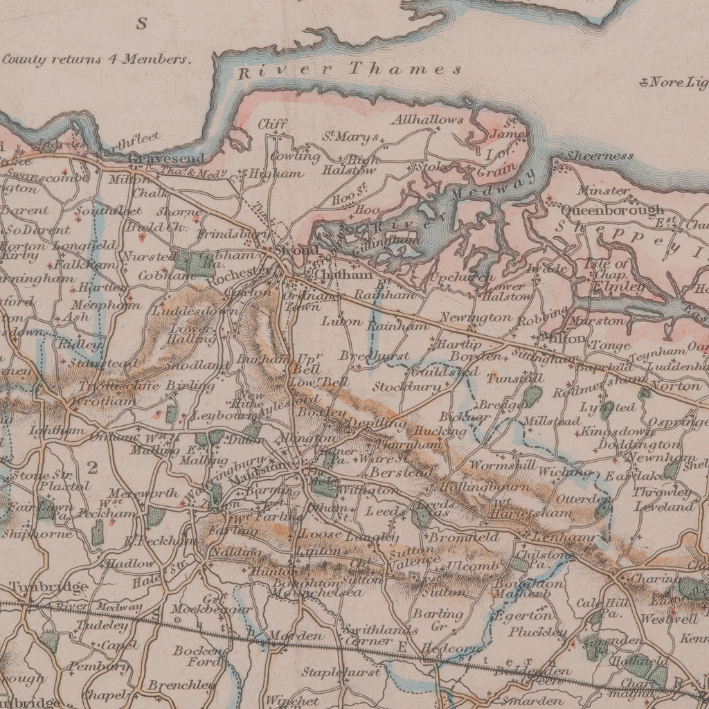 - Detail given to the Lathes - unique administrative divisions within Kent