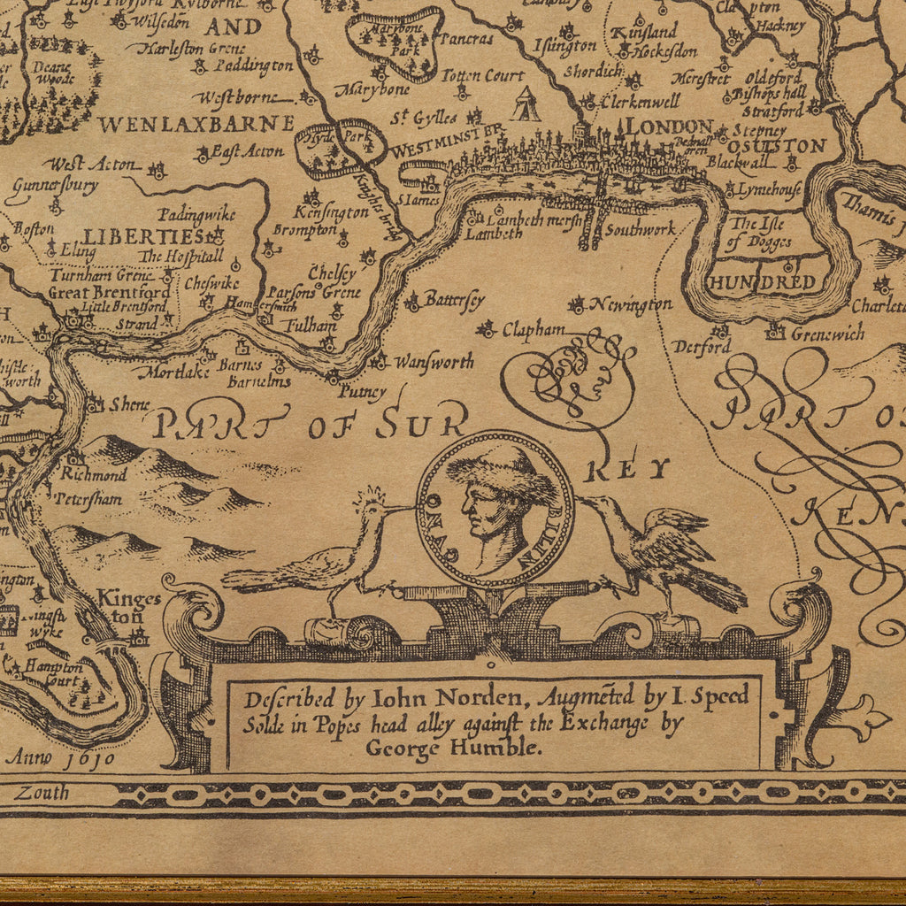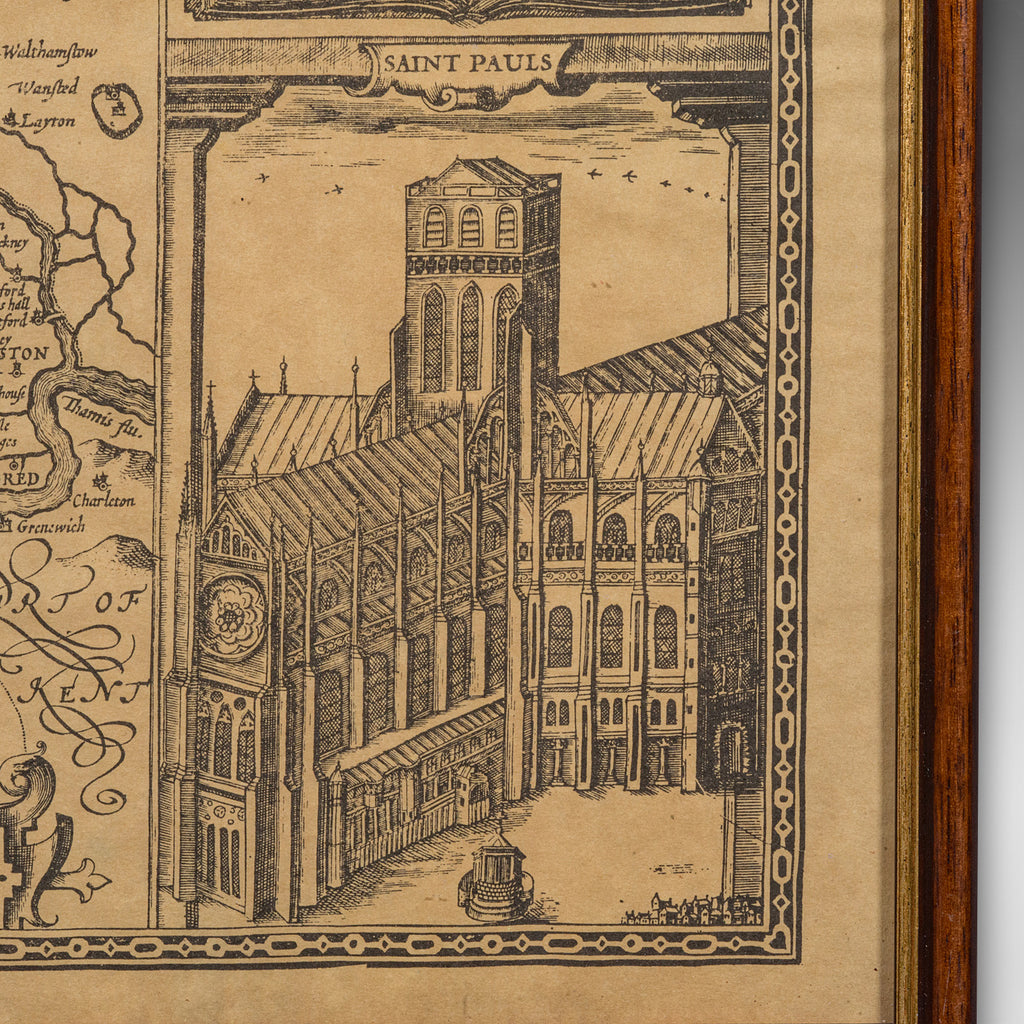 Vintage County Map, Middlesex, English, Framed 16th Century Print, John Norden