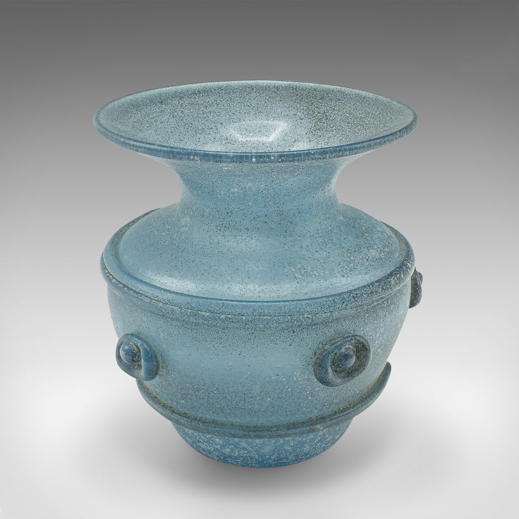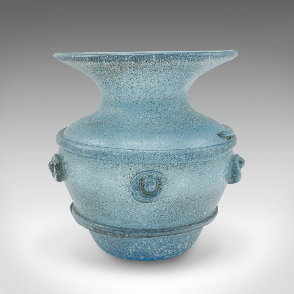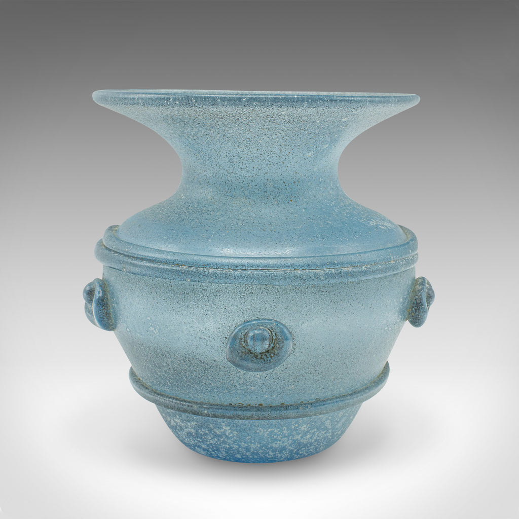 Vintage Frosted Display Vase, Italian, Glass, Ornamental, Flower Pot, Circa 1970