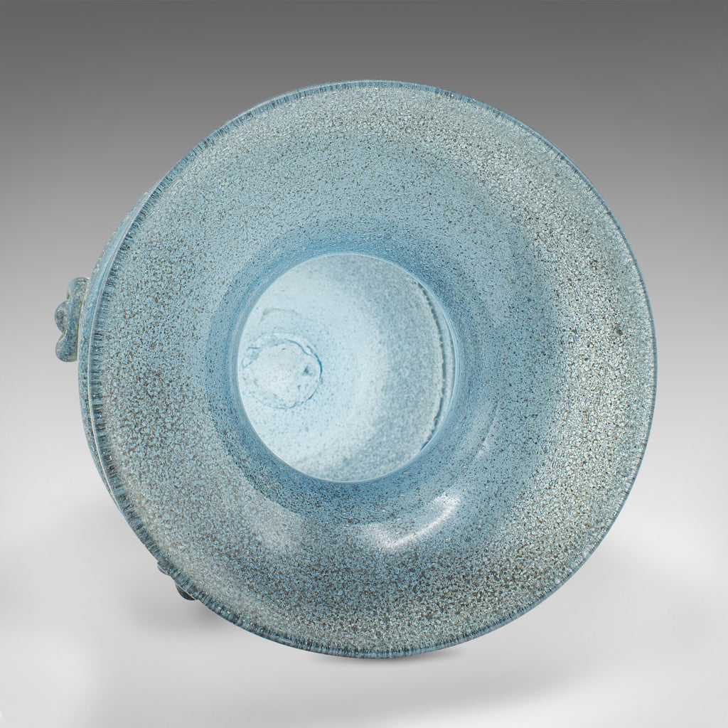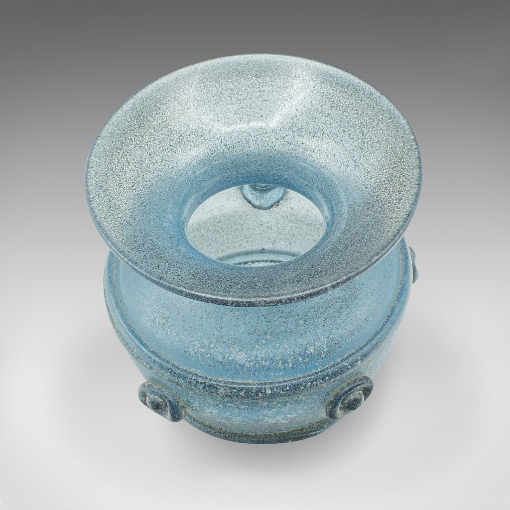 This is a vintage frosted display vase. An Italian, glass ornamental flower pot, dating to the late 20th century, circa 1970.