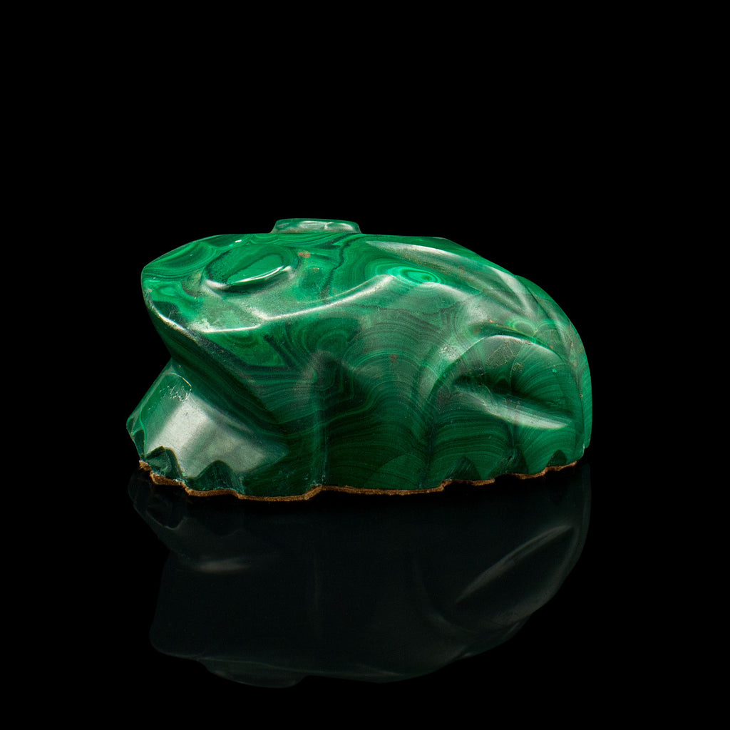 This is an appealing vintage ornamental frog, the malachite inviting with its fascinating patterns and rich green colour. Delivered ready to display.