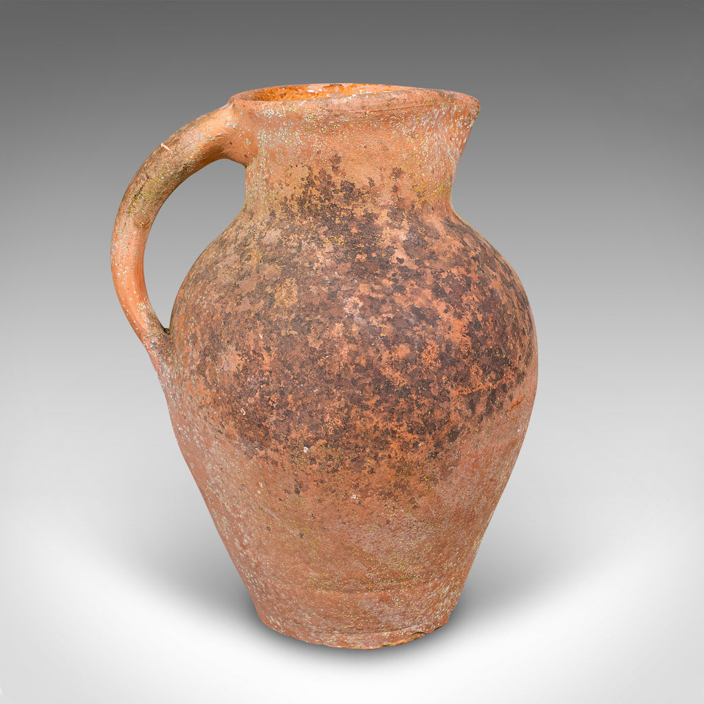This is a vintage patio planter jug. An Italian, terracotta garden jardiniere urn, dating to the mid 20th century, circa 1960. Displaying timeless Mediterranean character, this charming urn brings rustic warmth and authenticity to any garden or veranda.
