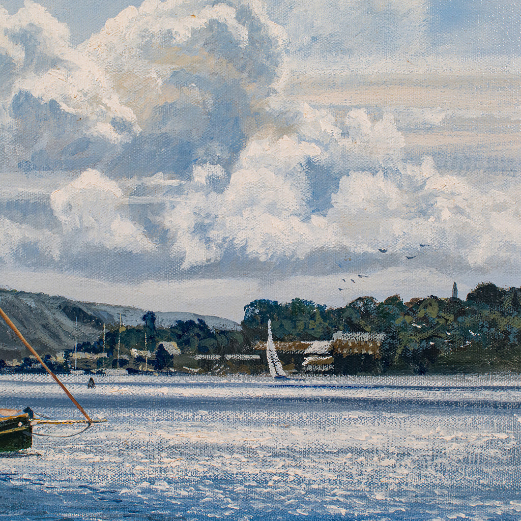 A charming and atmospheric maritime painting, ideal for the drawing room, study or coastal interior, capturing the enduring appeal of Plymouth Sound. Delivered ready to display.