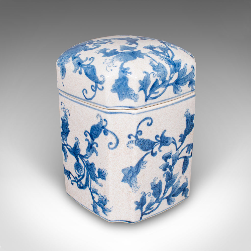 Vintage Spice Jar, Oriental, Ceramic, Lidded Cookie Canister, Blue & White
