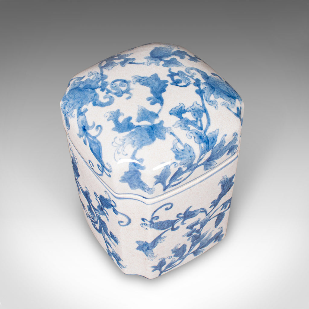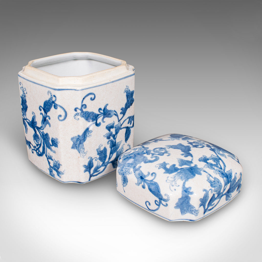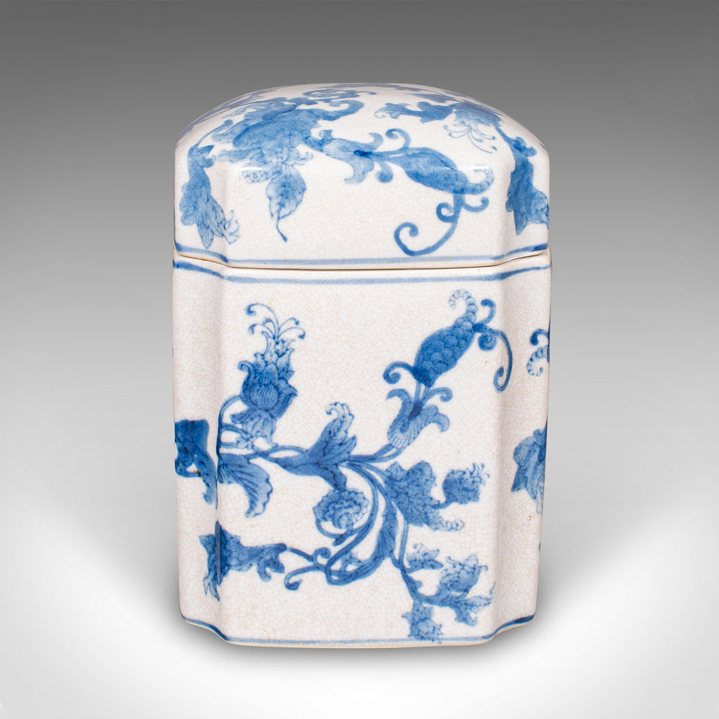 This is a vintage spice jar. An Oriental, ceramic lidded cookie or biscuit canister, dating to the late 20th century, circa 1980. Delightfully practical with timeless decorative appeal.