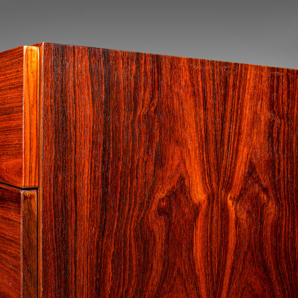 A superb example of mid-century Scandinavian craftsmanship, this vintage rosewood HiFi cabinet by the renowned Danish designer Ib Kofod Larsen for Faarup offers elegance, warmth and practicality in equal measure. Perfectly suited for the stylish audio enthusiast, this fine piece presents exceptional design details and a rich patina developed over six decades.