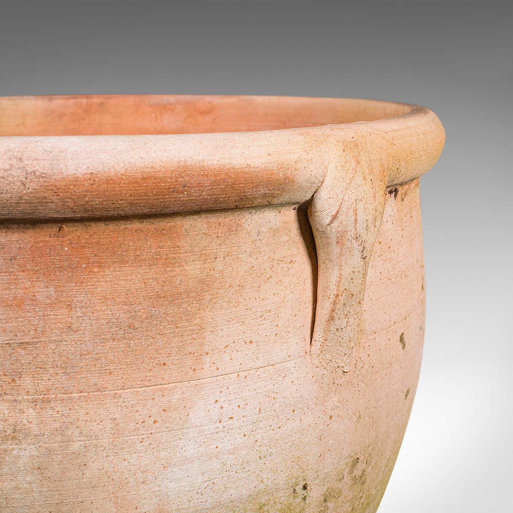 This is a vintage urn planter. An Italian, terracotta patio jardiniere, dating to the mid 20th century, circa 1960. A charmingly Italianate planter, presenting classic form and decorative appeal.