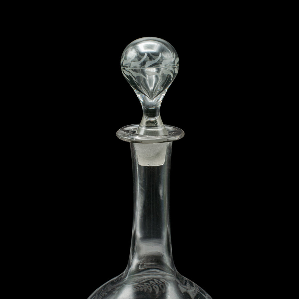 A stylish piece of English mid-century glassware, this etched wine decanter combines timeless elegance and functionality, making it a fine addition to any entertaining space or vintage collection. Delivered ready for the home.